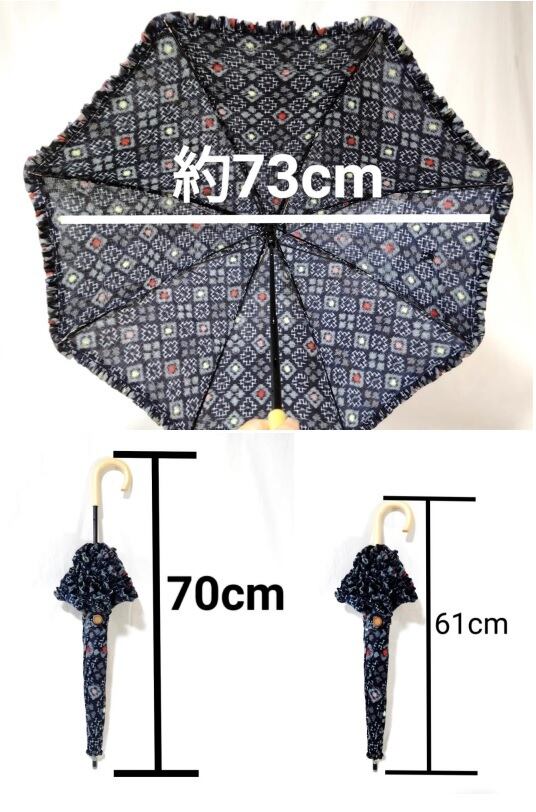 Material cloth : cotton 100%, handle : wood, rib : rust-proof plating of iron, shank : rust-proof plating of iron