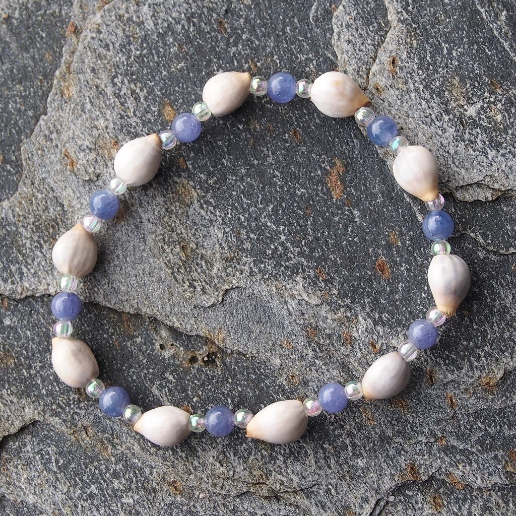 天然素材のジュズダマとタンザナイトのブレスレット