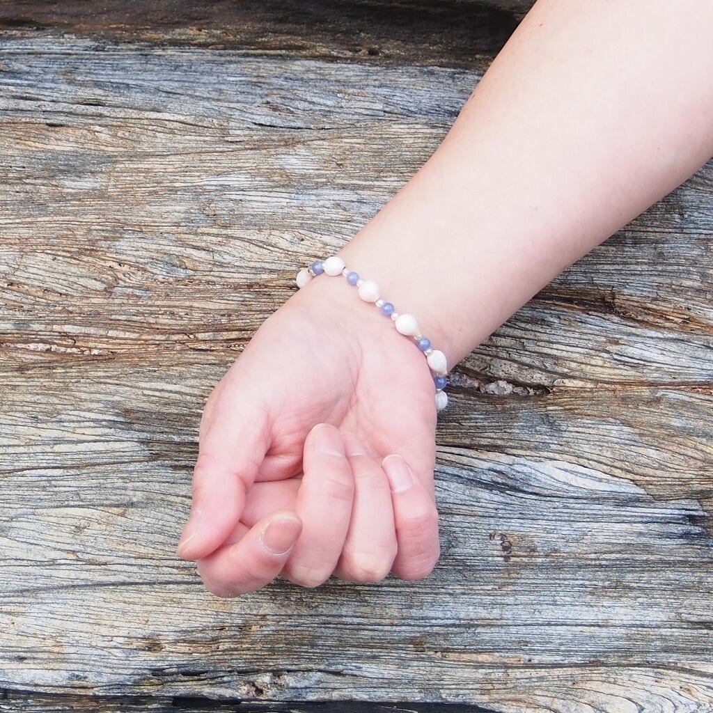 落ち着きのある青い輝きの石タンザナイトをつなげて、