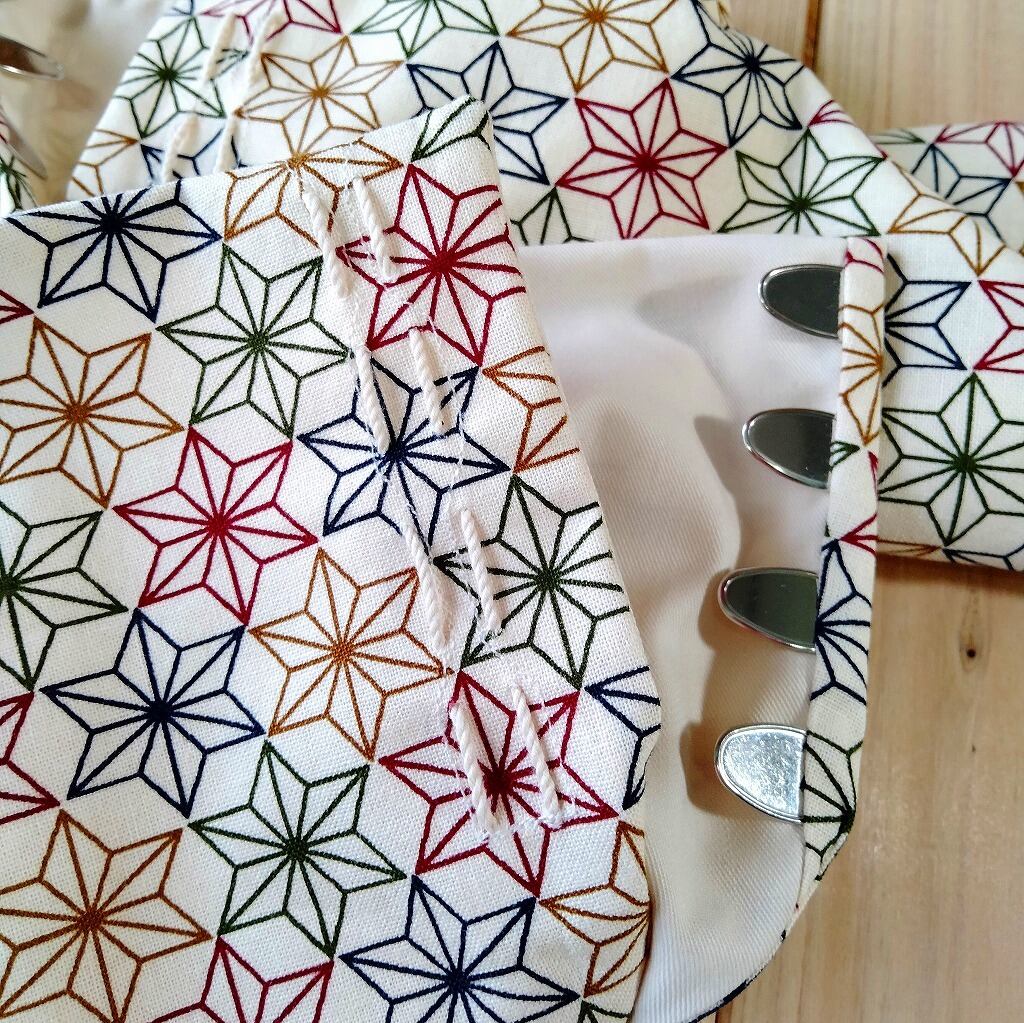 麻の葉柄で、昔ながらのコハゼで着脱する足袋です。